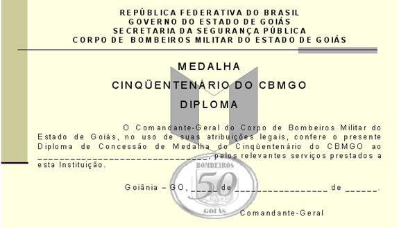 O GOVERNADOR DO ESTADO DE GOIÁS, no uso de suas atribuições constitucionais e legais e tendo em vista o que consta do Processo no 200800011000228, D E C R E T A: Art. 1o São introduzidas no Decreto no 3.589, de 14 de fevereiro de 1991, que institui o Regulamento de Medalhas do Corpo de Bombeiros Militar do Estado de Goiás, as seguintes modificações: I – o art. 1o fica acrescido do inciso VI, assim redigido: “Art. 1o .................................................................................... ................................................................................................ VI – Medalha do Cinqüentenário do CBMGO.” (NR) II – o art. 3o passa a vigorar com o seguinte acréscimo: “Art. 3o ................................................................................... ............................................................................................... IV – na data da comemoração do cinqüentenário da Corporação, para a medalha prevista no inciso VI do art. 1o deste Decreto.” (NR) III – o parágrafo único do art. 5o e o art. 7o passam a vigorar com a seguinte redação: “Art. 5o ................................................................................... ............................................................................................... Parágrafo único. O Comandante-Geral publicará, no Boletim-Geral, portaria com os nomes dos agraciados que fazem jus às medalhas previstas nos incisos II, III, IV, V e VI do art. 1o. ................................................................................................ Art. 7o Para cada medalha será expedido um diploma assinado pelo Comandante-Geral, a ser entregue juntamente com a medalha (Anexos IV e VI).” (NR) IV – fica acrescido o art. 19-B, com a seguinte redação: “Art. 19-B A Medalha do Cinqüentenário do CBMGO destina-se a agraciar, por ocasião da comemoração do cinqüentenário de criação do Corpo de Bombeiros Militar do Estado de Goiás, pessoas e/ou autoridades civis e militares de outras Corporações que tenham colaborado ou prestado relevantes serviços à Corporação. § 1o Serão confeccionadas 100 (cem) unidades da Medalha do Cinqüentenário do CBMGO, sendo todas concedidas em data única, prevista no inciso IV do art. 3o. § 2o As características da Medalha do Cinqüentenário do CBMGO, são as seguintes (Anexo V): I – em metal dourado, com II – no anverso, ao centro, haverá o brasão do cinqüentenário do CBMGO; III – no verso, ao centro, haverá a logomarca do CBMGO circundada, em baixo relevo, pelas expressões: “CINQÜENTENÁRIO do CBMGO”, na parte superior, e “1958 – IV – pendente a uma fita de seda com V – a barreta terá a disposição das cores da fita, com § 3o As pessoas e/ou autoridades civis, bem como os militares de outras Corporações a serem agraciados com a referida Medalha, serão indicados pela Comissão de Medalhas e submetidos à aprovação do Comandante-Geral, após análise minuciosa da conduta civil e/ou militar e efetiva colaboração com o CBMGO, digna de reconhecimento.” (NR) Art. 2o Os anexos V e VI a que se referem o art. 7o e § 2o do art. 19-B, do Decreto no 3.589, de 14 de fevereiro de 1991, com as alterações introduzidas pelo art. 1o, são os que acompanham o presente Decreto. Art. 3o Este Decreto entra em vigor na data de sua publicação. PALÁCIO DO GOVERNO DO ESTADO DE GOIÁS, em Goiânia, 06 de agosto de 2008, 120o da República. ALCIDES RODRIGUES FILHO (D.O. de 12-08-2008)