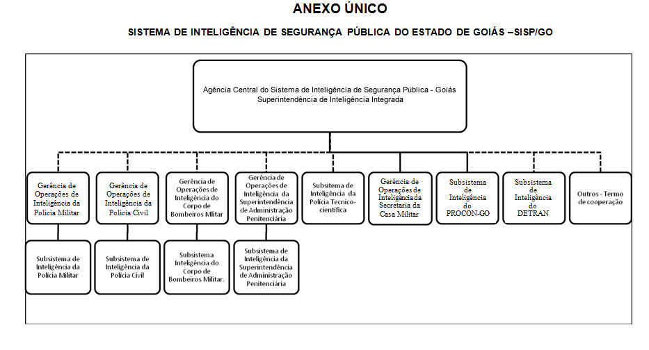 Institui, no âmbito da Secretaria de Estado de Segurança Pública e Administração Penitenciária, o Sistema de Inteligência de Segurança Pública do Estado de Goiás – SISP/GO. O GOVERNADOR DO ESTADO DE GOIÁS, em exercício, no uso de suas atribuições constitucionais e legais, e tendo em vista o que consta do Processo nº 201700013000107, DECRETA: Art. 1º Fica instituído, no âmbito da Secretaria de Estado de Segurança Pública e Administração Penitenciária, o Sistema de Inteligência de Segurança Pública do Estado de Goiás -SISP/GO. § 1º O SISP/GO é um sistema cooperativo e colegiado, composto pelos órgãos de que trata o art. 3º, voltado para o exercício permanente e sistemático de ações especializadas na produção e salvaguarda de conhecimentos necessários para prever, prevenir, neutralizar e reprimir atos criminosos de qualquer natureza ou relativos a outros temas de interesse da segurança da sociedade e do Estado. § 2° O SISP/GO tem a finalidade de coordenar e integrar as atividades de inteligência de segurança pública no âmbito do Estado. § 3º O SISP/GO integra o Subsistema de Inteligência de Segurança Pública –SISP-, instituído pelo Decreto federal nº 3.695, de 21 de dezembro de 2000, no âmbito do Sistema Brasileiro de Inteligência -SISBIN-, instituído pela Lei federal nº 9.883, de 7 de dezembro de 1999. Art. 2º Para os efeitos deste Decreto, deverão ser observados os seguintes conceitos: I - Sistema de Inteligência de Segurança Pública do Estado de Goiás -SISP/GO- é o conjunto formal de subsistemas e de agências de inteligência distribuídas em todo o território estadual, com atuação harmônica, integrada e ordenada, que busca os mesmos objetivos e são orientados por uma padronização de doutrina, procedimentos e rotinas, estabelecendo-se, dentre elas, o compromisso pela colaboração, pelo fluxo de dados e de conhecimentos, por intermédio do canal técnico; II - atividade de inteligência de segurança pública é o exercício permanente e sistemático de ações especializadas para identificar, avaliar e acompanhar ameaças reais ou potenciais na esfera de segurança pública, basicamente orientadas para produção e salvaguarda de conhecimentos necessários para subsidiar os tomadores de decisão, para o planejamento e a execução de uma política de segurança pública e das ações para prever, prevenir, neutralizar e reprimir atos criminosos de qualquer natureza que atentem à ordem pública, à incolumidade das pessoas e do patrimônio; III - contrainteligência se destina a proteger a atividade de inteligência e a instituição a que pertence, mediante a produção de conhecimento e implementação de ações voltadas à salvaguarda de dados e conhecimentos sigilosos, além da identificação e neutralização das ações adversas de qualquer natureza; IV - atividade de inteligência policial militar é o exercício permanente e sistemático de ações especializadas para identificar, avaliar e acompanhar ameaças reais ou potenciais na esfera de segurança pública, orientadas para produção e salvaguarda de conhecimentos necessários para assessorar o processo decisório; para o planejamento, a execução e o acompanhamento de assuntos de segurança pública e da polícia ostensiva, subsidiando ações para prever, prevenir e neutralizar ilícitos e ameaças de qualquer natureza, que possam afetar a ordem pública e a incolumidade das pessoas e do patrimônio, sendo coordenada pela Gerência de Operações de Inteligência da Polícia Militar e exercida pela Agência Central de Inteligência da Polícia Militar (PM/2) e pelas demais agências regionais e locais de inteligência; V - atividade de inteligência policial judiciária é o exercício permanente e sistemático de ações especializadas para identificar, avaliar e acompanhar ameaças reais ou potenciais na esfera de segurança pública, orientadas para produção e salvaguarda de conhecimentos necessários para assessorar o processo decisório no planejamento, execução e acompanhamento de uma política de segurança pública; nas investigações policiais e nas ações para prever, prevenir, neutralizar e reprimir atos criminosos de qualquer natureza que atentem à ordem pública e à incolumidade das pessoas e do patrimônio, sendo exercida pelas agências de inteligência no âmbito da Polícia Civil; VI - atividade de inteligência bombeiro militar é o exercício permanente e sistemático de ações especializadas para identificar, avaliar e acompanhar ameaças reais ou potenciais na esfera de segurança pública, orientadas para produção e salvaguarda de conhecimentos necessários para subsidiar o processo decisório; para o planejamento, a execução e o acompanhamento de uma política de segurança pública e das ações para prever, prevenir e neutralizar riscos referentes a desastres naturais e de causa humana, calamidades, a ordem pública, a incolumidade das pessoas e do patrimônio; assuntos de interesse institucional e a proteção dos seus ativos corporativos, sendo exercida pelas agências de inteligências do Corpo de Bombeiros Militar; VII - atividade de inteligência penitenciária é o exercício permanente e sistemático, por meios de ações especializadas para identificação, detecção, acompanhamento e avaliação de ameaças reais ou potenciais na esfera do sistema penitenciário, orientadas para a produção e salvaguarda de conhecimentos necessários para a decisão no âmbito de segurança pública, e no planejamento, definição de uma política de administração penitenciária, visando neutralizar, coibir e reprimir atos criminosos de qualquer natureza, principalmente aqueles oriundos de estruturas hierarquizadas existentes nos sistemas carcerários, cuja atuação interna e externa possa promover ou ordenar crimes de toda ordem; VIII - atividade de inteligência pericial criminal é o exercício permanente